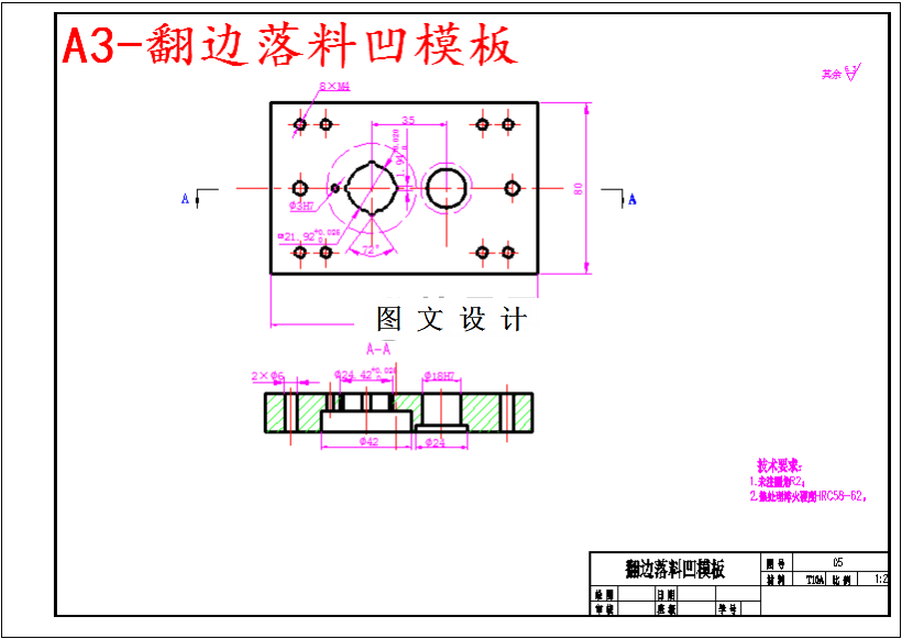 根据对零件图的分析,其冲压基本工序可初步定为:剪料——冲孔——落料翻边。冲压加工过程要求提高生产效率,降低生产成本来满足生产要求,可要求工序数目尽量减小。以本设计将冲孔、落料翻边由两套连续模具完成。