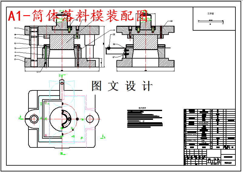 筒体是以个形状简单的圆筒形拉深件,要求成型后表面光洁、平整、不带有毛刺,一般冲裁件的尺寸精度可达IT10~IT12级,高精度可达IT8~IT10级。筒体零件形状为轴对称,拉深工艺性好;筒体尺寸标注在外形尺寸上,因此零件外形尺寸有要求。从冲压件形状来看,该件需要的基本工序及工序顺序为落料、拉深、切边。本次设计采用单工序模形式。本模具是一套落料单工序模。模具的特点是采用了固定挡料销和导料板的定位结构。本模具可完成落料一道工序。条料送进时,由导料板5导向,冲首件时以目测定位,待冲第二个工件时,则用挡料销15定位。模具工作时,用压力机的气垫压边,可获得较大压边力,压力和行程的大小也容易调节,另外,可使模具结构简单。