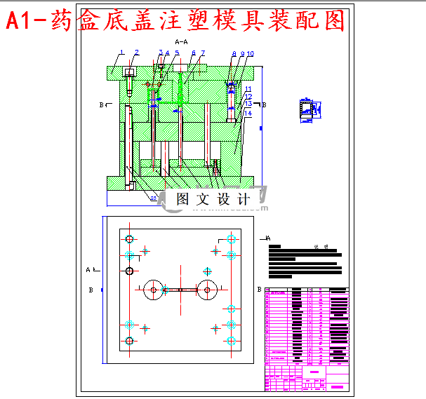 该塑件是一药盒底盖,生产批量大,材料为ABS,属通用性热塑性塑料,其成型性能较好,流动性好,成形收缩率较小(通常为0.3-0.8%),比热容较底,在料筒中塑化效率高,在模具中凝固较快,成形周期短,但吸水性较大,成形前必须充分干燥,可在螺杆式卧式注射机上成形。依据对塑件结构的分析,采用矩形直浇口浇注,因此采用单型面。ABS塑性较好,采用倒锥形冷料穴,开模时靠倒锥起拉料作用,然后由推杆强制推出,易于实现自动化操作。由于考虑到塑件的外观尺寸和塑件的形状,且是一模两腔。
