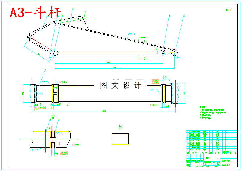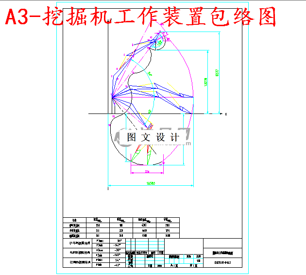采用的设计方法主要是参照相关机型进行测绘、比拟反复验算确定尺寸。 在设计中应注意工作装置设计原则,最大卸载高度不低于13.3米,最大挖掘高度19.78米,在各部件满足要求的条件下实现9.34米最大挖掘深度,19.4米最大挖掘半径,铲斗最大挖掘力932KN,斗杆最大挖掘力912KN,实现挖掘的功能。