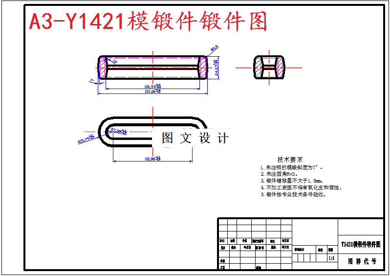 零件为环形件,环形件是工业生产中常用零件之一。该锻件为精锻件。此环形件是风电、石油、工程机械上一个重要的零件。确定的为锤锻。具体的来说,下料——终锻——机加工。环形类零件材料常用45钢,精度较高的可选用40Cr、轴承钢GCr15、弹簧钢65Mn,也可选用球墨铸铁;对高速、重载,选用20Mn2B、20Cr等低碳合金钢或38CrMoAl氮化钢点[10-11]:。 45钢是环形类零件的常用材料,它价格便宜经过调质(或正火)后,可得到较好的切削性能,而且能获得较高的强度和韧性等综合机械性能,淬火后表面硬度可达45~52HRC。轴承钢GCr15和弹簧钢65Mn,经调质和表面高频淬火后,表面硬度可达50~58HRC,并具有较高的耐疲劳性能和较好的耐磨性能,可制造较高精度的环形件。 因其属于一般环形类,故选45热轧圆钢,需调质可满足其要求。