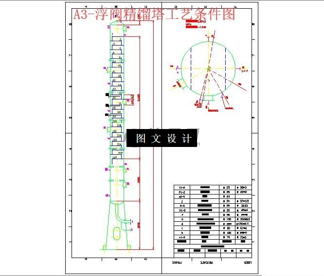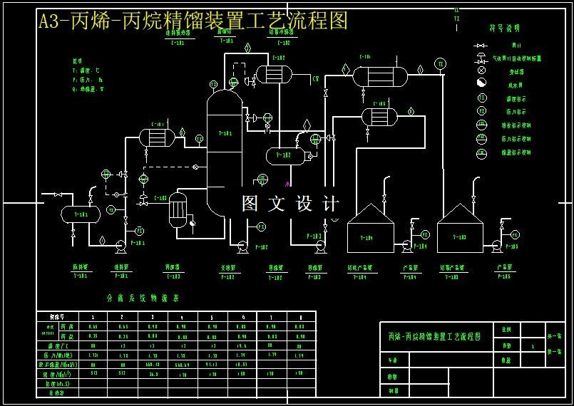 丙烯-丙烷体系对浮阀塔精馏装置设计(处理量:80回流比系数:1.4)本设计说明书包括概述、流程简介、精馏塔、再沸器、辅助设备、管路设计和控制方案共七章。说明中对精馏塔的设计计算做了详细的阐述,对于再沸器、辅助设备和管路的设计也做了正确的说明。精馏是分离过程中的重要单元操作之一,所用设备主要包括精馏塔及再沸器和冷凝器。本设计为浮阀塔,浮阀塔的突出优点是操作弹性大,阻力小;塔板效率高。但用久后,操作易失常。然而经长期研究发现其尚能满足生产要求,目前应用较为广泛。