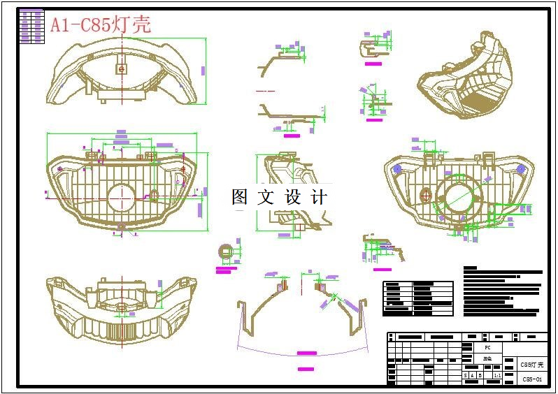 本设计主要是为雅马哈新车型C85设计一款外型美观且各项性能满足试验要求的前照灯。设计的整个过程是在实习公司进行,以某软件作为设计平台,首先进行灯罩、灯座等的3D数据初步设计,然后根据各项标准对数据进行结构细化,理论分析等,然后根据设计数据借助公司现有的设备做出样件,配齐其他部件进行了整灯装配,并进行了实验验证。通过实验结果证明样件的配光性能、耐温度性能、振动耐久性均满足要求。 本说明书主要介绍该前照灯设计过程中部分结构的设计原理、设计标准、技术要求等以及设计完成后按照雅马哈公司的试验要求对样件进行试验并得出结论。