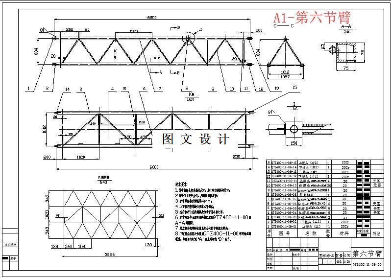 本设计的题目是QTZ400臂架的设计,主要设计理念是通过参照同类塔式起重机进行设计。QTZ400塔式起重机有多种形式,此次设计的形式为上回转液压顶升自动加节,固定式高度,工作幅度等设计。本机性能先进,结构合理,操作使用安全可靠.其主要特点是起重高度大,工作幅度宽.