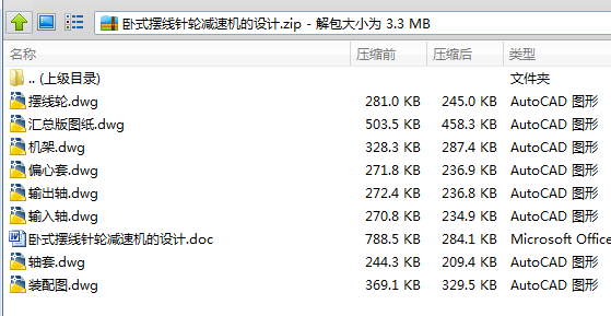 摘 要:本次设计的是对一种带机架的卧式摆线针轮减速机进行分析研究。其输入功率P=11Kw,传动比17,输出转矩