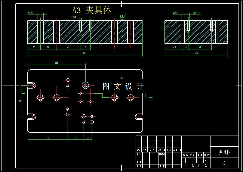 本次设计是要为此图中的叉环设计一个铣24X40槽的夹具。首先对工件的加工要求进行分析,已知工件为长方体,在长方体上铣24X40的槽,根据工件的形状和加工要求,我认为采用铣床比较合理。然后,根据六点定位原理,选用一面、两支承钉和一销,大面限制3个自由度,两只承钉限制2个自由度,定位销限制1个自由度,正好满足六点定位原理,由于限制了六个自由度,所以只需要将工件夹紧就可以进行加工了,在垂直方向上进行夹紧,可以利用活动V型压块和移动螺杆进行夹紧,因为螺杆使用简单,而且不影响加工过程,所以最终选择螺杆活动V型压块进行夹紧。