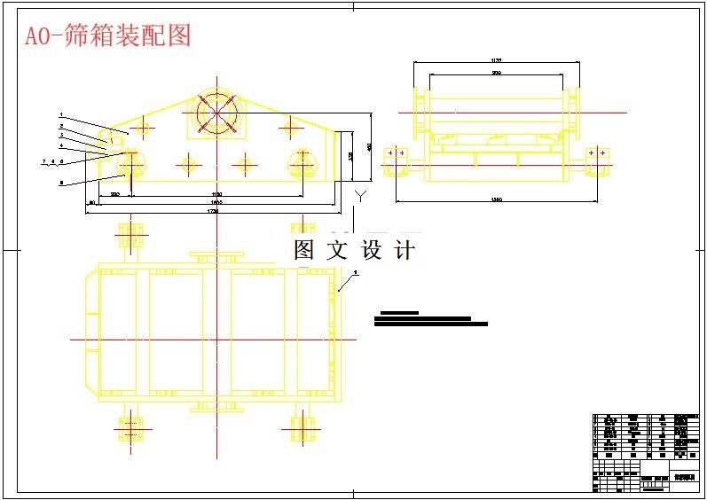 本文所设计的振动筛的筛分物料为球磨机产品。该产品的大小不是很平均,为了做出更符合要求的物料就需要用振动筛来将球磨机产品进一步细分,将不符合要求的物料重新用球磨机磨小。经过这样的反复处理最终将物料全部做成符合要求的产品。本课题的振动筛为自同步双振动电机驱动的,其特点是结构简单、安装方便、成本低、容易操作及维护等。其筛箱为板梁铆焊组合结构,由主副侧板、管梁、入料挡板、出料板、筛板等组成,侧板选用低合金压力容器钢板,强度高、可焊性好,周边折弯,并在振动方向及沿纵向连接多根角钢,使侧板刚度大大增强,有利于强度的提高和噪音的降低。管梁由法兰盘、无缝钢管、加强槽钢等组成,重量轻、强度大,便于制造安装,具有互换性。加强槽钢上有T形孔,使用T形螺栓,便于筛板的安装维护,消除U形螺栓对管梁的磨损。工作原理:两台振动电机的型号相同,可以产生一种组合的直线振动。这种振动可以使输送槽体中的物料运动,并与筛面发生碰撞,使小于筛孔的物料透过,从而实现物料的几何分级,实现筛分。总体方案为:采用普通筛分法,振动形式为共振,运动轨迹为直线运动,激振方式为惯性式,隔振方式为一级隔振,隔振弹簧为金属螺旋式隔振弹簧。