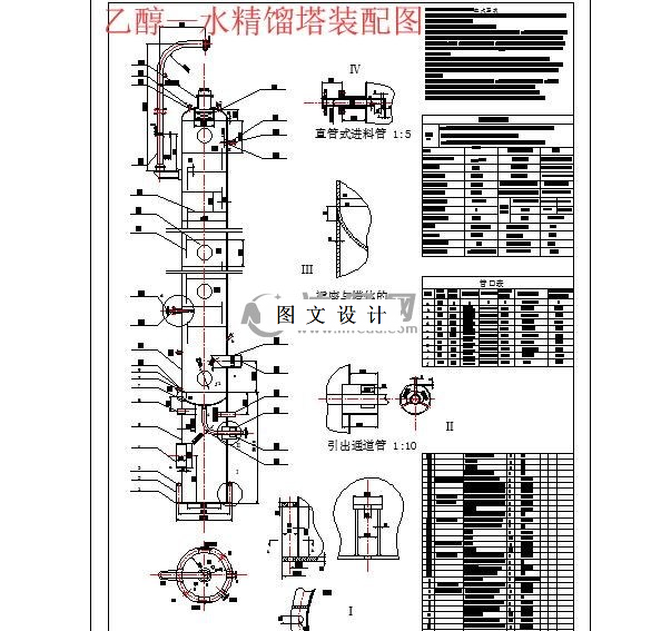 1.1题目: 分离乙醇—水板式塔精馏塔设计 1.2生产原始数据: 1)原料:乙醇—水混合物,含乙醇35%(质量分数),温度35℃; 2)产品:馏出液含乙醇93%(质量分数),温度38℃,残液中含酒精浓度≤0.5%; 3)生产能力:原料液处理量55000t/年,每年实际生产天数330t,一年中有一个月检修; 4)热源条件:加热蒸汽为饱和蒸汽,其表压为2.5Kgf/cm2; 5)当地冷却水水温25℃; 6)操作压力:常压101.325kpa;