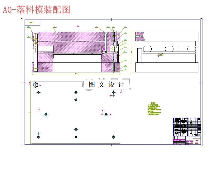 首先对零件进行工艺分析,经过工艺分析和对比,决定采用先落料再冲孔最后弯曲的工序,所以设计了三套模具:冲孔模、落料模和弯曲模。接着对零件排样图进行设计,完成了材料利用率的计算。通过落料力,卸料力,推件力等计算,以及对凹模,凸模,上模座,下模座,垫板,卸料板等主要零部件设计,确定其外形尺寸和材料,并确定压力机的型号,设计中对工作零件和压力机规格均进行了必要的校核计算。通过前面的设计方案选择标准件,画出模具各零件图和装配图。最后对落料模的凸模进行仿真加工。