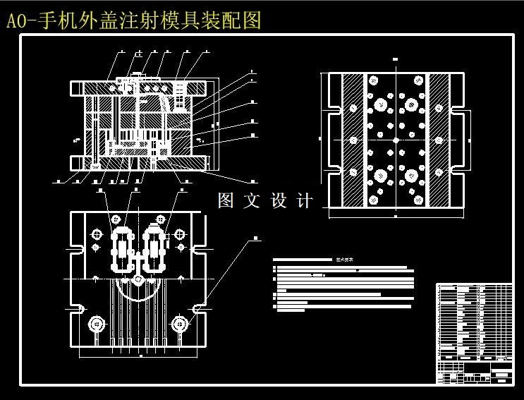 本次设计的制品为ABS手机外壳注射模设计,利用autocAD来完成其装配图和零件图。模具采用了侧向抽芯,使侧向的筋和肋能更好的脱模。模具结构紧凑、工作可靠、操作方便、运行平稳、冷却效果好、劳动强度低、生产效率高、生产的塑件精度高、生产成本低。本文从型腔的数量和布局的确定、注射机的选择、流道的设计、模板及其标准件的选择、冷却系统、成型部件凸模、凹模的设计等给出了详细的设计过程。