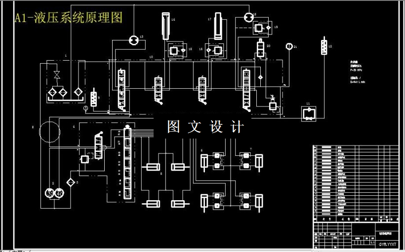 起重机液压系统主要用来控制起升机构、变幅机构、回转机构等。本设计对轮胎起重机的组成及主要参数的确定,驱动装置、底盘与动力装置的选择,总体选形及稳定性做了一定的介绍与总结。 根据液压系统的技术指标及一些相关参数对该系统进行了整体方案设计,对其功能和工作原理进行分析并且绘制液压系统原理图,初步确定了系统各回路的基本结构及主要元件。按照液压性能参数进行元件的选择计算,对变幅油缸、伸缩机构、支腿的结构进行设计并对相关部分进行验算和校核,最后通过对系统性能的验算和发热校核,满足了该起重机所要达到的要求。