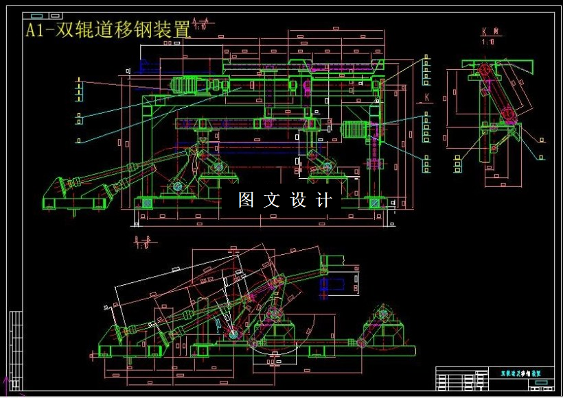 本次设计题目是小型冷剪后双辊道及移钢装置,钢坯在剪后由辊道1加速使剪后钢坯与未剪钢坯迅速分离,然后通过移钢装置将钢坯移送到辊道2上,由辊道2将钢坯运送到均整机处。设计中对双辊道和移钢机构进行了主要设计。为了快速分离剪后前后钢坯,对辊道速度进行了合理调整;在移钢装置中采用机械和液压结合,利用液压缸带动移钢小车将钢坯由输送辊道移到对齐辊道上,同时将对齐辊道上的钢坯输送到移钢链条上,循环往复完成钢坯的运送。这样设计最大的优点就是利用液压系统控制上的优势,可充分发挥设备性能,而且能满足动力要求。
