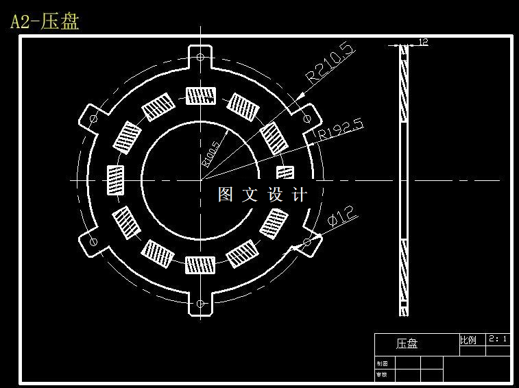 基本参数: 额定装载质量 5000KG 最大总质量 8930KG 最大车速 100KM/h 比功率 15KW/t 比转矩 40N·m/t主要进行离合器总成设计。离合器总成设计的内容包括: 1.查阅资料、调查研究、制定设计原则 2.根据给定的设计参数(发动机最大力矩,传动系传动比,驱动轮类型与规格,汽车总质量和使用工况),选择离合器总成的结构型式及主要特性参数,设计出一套完整的离合器装置,设计过程中要进行必要的计算。 3.离合器结构设计和主要技术参数的确定 (1)从动盘总成设计 (2)压盘和离合器盖设计 (3)离合器分离装置设计 (4)扭转减振器设计 (5)操纵机构设计 3.绘制装配图及主要零部件的零件图