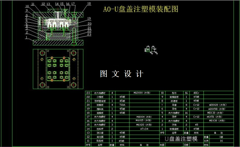 通过对注塑件来进行形状尺寸分析、工艺分析等的综合分析以及工艺方案的确定;根据这些分析来进行注射模具的设计,确定注塑方案和模具结构形式,工作零件设计与模架选择;并对成型工艺等多方面分析,通过对工艺计算,制定正确加工方案,并对模具的所有成型零部件进行验证及校核;最后根据设计来进行选择注塑机以及绘制模具零件图和装配图。