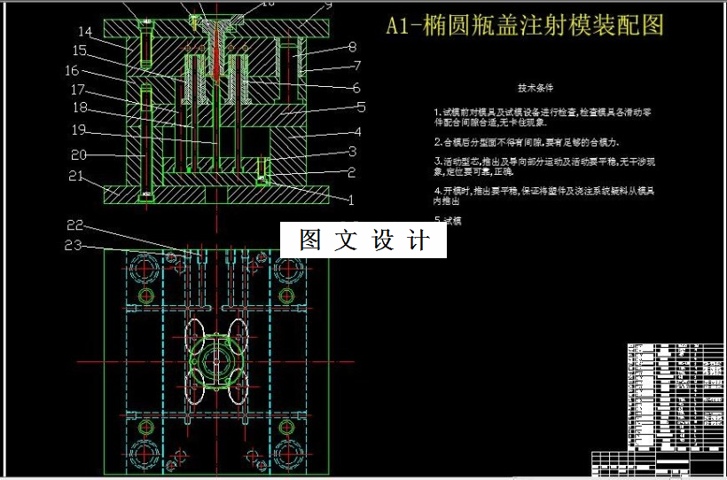 通过对注塑件来进行形状尺寸分析、工艺分析等的综合分析以及工艺方案的确定;根据这些分析来进行注射模具的设计,确定注塑方案和模具结构形式,工作零件设计与模架选择;并对成型工艺等多方面分析,通过对工艺计算,制定正确加工方案,并对模具的所有成型零部件进行验证及校核;最后根据设计来进行选择注塑机以及绘制模具零件图和装配图。