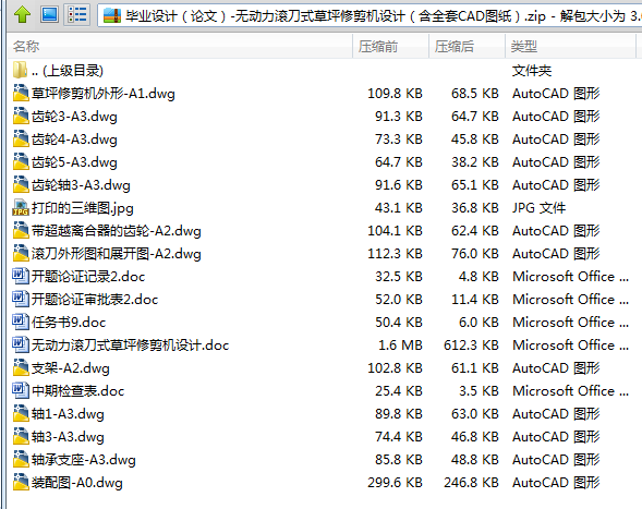 无动力滚刀式草坪修剪机设计