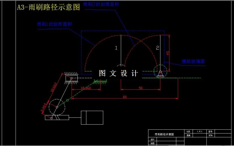 轿车刮水器是用来清扫轿车风窗玻璃上的雨雪和尘埃的装置,是汽车不可缺少的重要部件。雨刮器总成含有电动机、减速器、四连杆机构、刮水臂心轴、刮水片总成等。当司机按下雨刮器的开关时,电动机启动,电动机的转速经过蜗轮蜗杆的减速增扭作用驱动摆臂,摆臂带动四连杆机构,四连杆机构带动安装在前围板上的转轴左右摆动,最后由转轴带动雨刮片刮扫挡风玻璃。本文主要针对于轿车刮水器机构设计并进行三维仿真,达到直观、实用的设计。