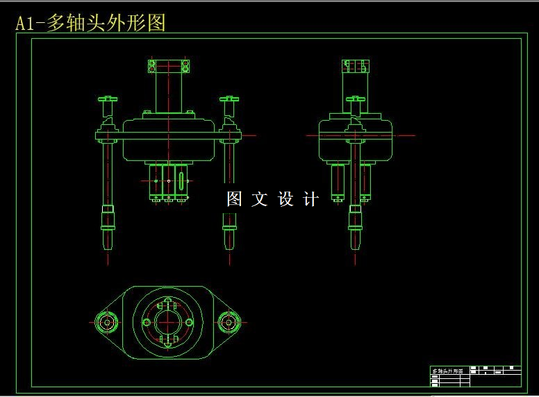 本文是立式Z5030钻床用均布三轴头设计,该三轴头是利用法兰盘固定到钻床Z5030的,用于同一平面均匀分布三孔的零件中大批量生产。三轴头的设计参数来源于一般的加工工艺条件,以适应更广阔的加工范围。根据这些工件的切削条件,可以确定三轴头的工艺主参数。主参数确定后便可以进行三轴头的总体设计。 三轴头的传动原理是通过齿轮啮合增加钻削轴的轴数,以满足三孔加工的要求。通过单级齿轮啮合,输入轴和输出轴的转向没变,但由于齿轮分支传动,变成三根输出轴。可以看出,改装后的三轴钻床可以同时完成三个孔的钻、扩、铰等工序。工艺范围可以满足一般加工情况的孔类钻削要求,还可以用于攻丝、扩、锪孔等加工装置。此外该装置具有结构简单、操作方便、应用范围广等特点,值得推广。