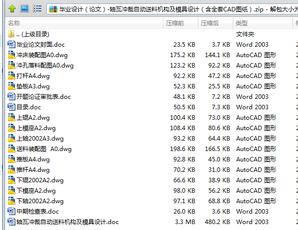 2、若题目上备注三维,则表示文件里包含三维源文件,由于三维组成零件数量较多,为保证预览截图的简洁性,本站将三维文件夹进行了打包。三维及CAD预览截图,均为本站电脑打开软件进行截图的,保证能够打开,下载原件超高清,下载后解压即可;