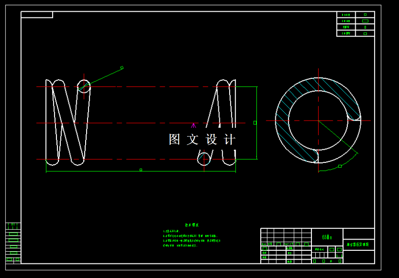 本次设计的圆柱弹簧离合器的摩擦片参数为外径D=225mm;内径d=150mm;片厚h=3.5mm;圆柱弹簧的参数为弹簧有效工作圈数n=6.5圈; 簧丝直径d=4mm; 单个簧最小重量 wmin=0.538KN。从动毂参数为外径De=250mm;Temax=200N.m;花键齿数n=10;花键外径D=35mm;花键内径d=28;键齿b=4mm; 有效齿长l=35mm。