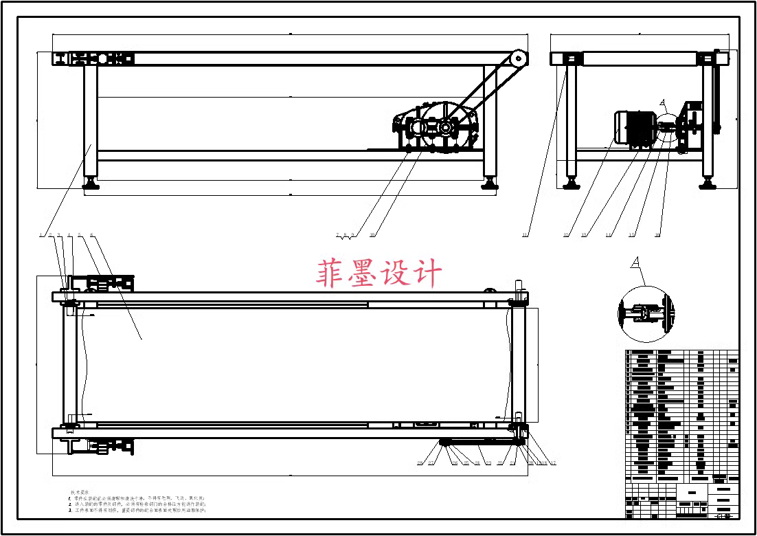 为了完成本次设计内容首先根据设计现有技术文献对输送机的功能分析确定其主要的传动结构,并且结合输送负载能力对传动结构中用到的零部件进行校核计算分析,确保所设计的结构在能够满足理论设计的使用高要求,并且采用机械设计中理论设计和材料分析对所设计的零件尺寸进行强度校核,在对输送机进行设计的同时还需要考虑到输送机的皮带张紧装置,确保输送机具有一定的使用寿命,最后结合机械设计手册的绘图知识对所设计的结构进行二维图CAD和三维图的建模装配,通过三维建模装配能够直观清晰的对所设计的结构进行干涉检查确保所设计的结构能够具有可靠的实施性,通过对本次输送机的传动设计让我对输送行业具有更加清晰认识的同时也对自身的绘图和视图能力有了一个更加清晰的认识。