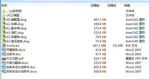 CAD在机械制造行业的应用最早使用也最为广泛。目前其最主要的应用涉及到机械,电子,建筑等工程领域。世界各大航空,航天及汽车等制造业巨头不但广泛应CAD/CAM/CAE技术进行产品设计,而且投入大量的人力,物力及财力进行CAD/CAM/CAE软件的开发,以保持行己技术上的领先地位和国际市场上的优势。PRO/E在复杂机械工程中应用,这样不但可以提髙设计质量,缩短工程周期,还 可以节约大量的建设投资。传统的卸车设计与开发,一般在完成概念设计、方案论证和产品设计后,还要进行样机试制及验证。随着三维CAD技术的成熟及大规模推广应用,虚拟样机技术逐渐成熟起来,借此工程技术人员可以在计算机上建立自卸车的三维模型,模拟在现实环境下自卸车举升机构的运动和动力特性,并根据仿真结果进行优化设计,确定举升机构的布置方案,以在设计早期确定关键的设计参数,达到缩短开发周期,降低成本,提高产品质量的期望。