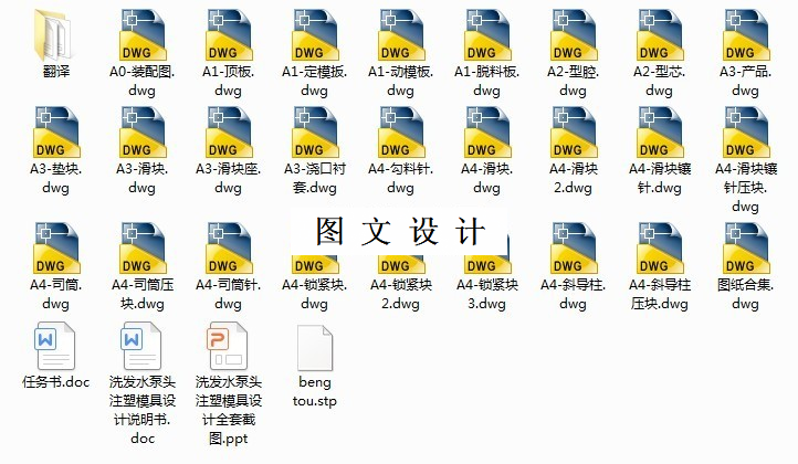 根据塑料制品的要求,了解塑件的用途,分析塑件的工艺性、尺寸精度等技术要求,选择塑件制件尺寸。本模具采用一模四件,点浇口转潜伏浇口进料,注射机采用海天120W1×B型号,设置冷却系统,CAD和UG绘制二维总装图和零件图,选择模具合理的加工方法。附上说明书,系统地运用简要的文字,简明的示意图和和计算等分析塑件,从而作出合理的模具设计。