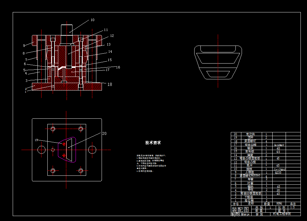 了进一步的提高。本设计是落料冲孔和弯曲的模具。本设计的内容是确定落料尺寸和弯曲形式以及工艺性,绘制模具总