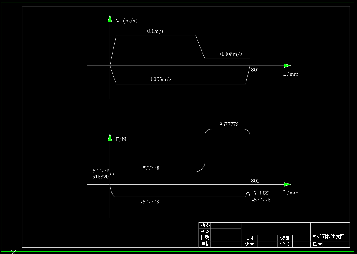 (1)实现功能: 主 缸:快速下行—慢速加压—保压—泄压回程—停止的循环动作 顶出缸:顶出—退回,或者是浮动压边—停止—顶出的动作循环 (2)基本参数:工作台液压缸最大压制力8100000N,工作台运动部件重力(回程力)520000N,空载快下速度0.1m/s,快速回程速度为0.035m/s,工作台工进速度为0.008m/s,最大行程总和800mm,设定快进行程700mm,工进行程100mm,不考虑摩擦力,工作台启动时间(加减速时间)0.1s:,液压缸机械效率为0.9,顶出力F=300000N,顶出行程250mm。