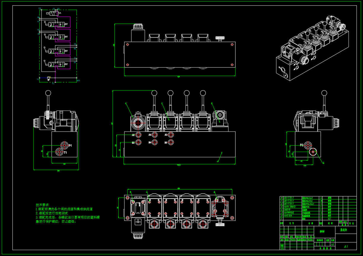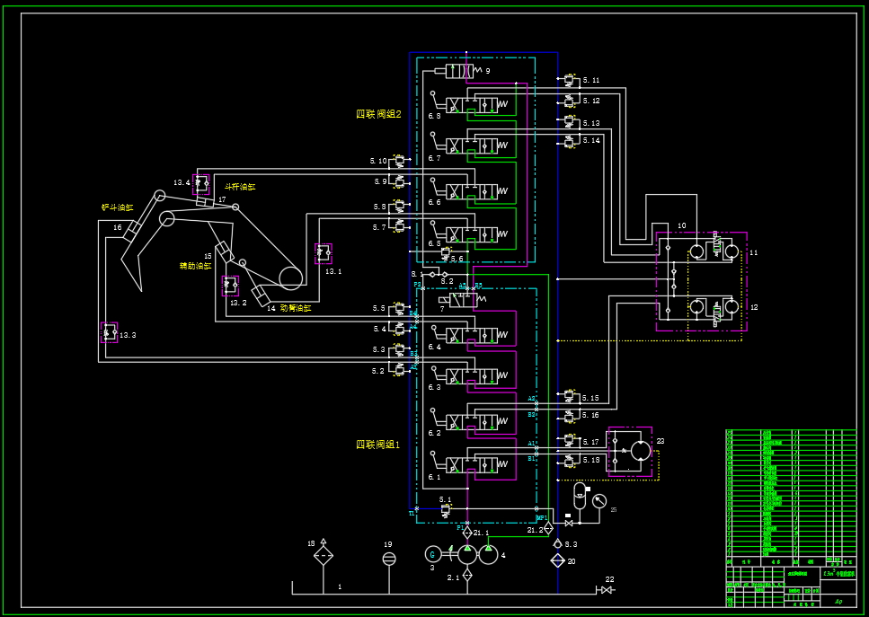 包含全套二维CAD,液压系统原理图,泵站总装配,斗杆油缸装配,阀组,集成块,油箱焊合图等。 系统压力:27MPa 系统流量:60L/min 铲斗油缸最大受力:192KN 动臂油缸最大受力:343KN 斗杆油缸最大受力:116KN(单缸驱动) 整机重量:25T