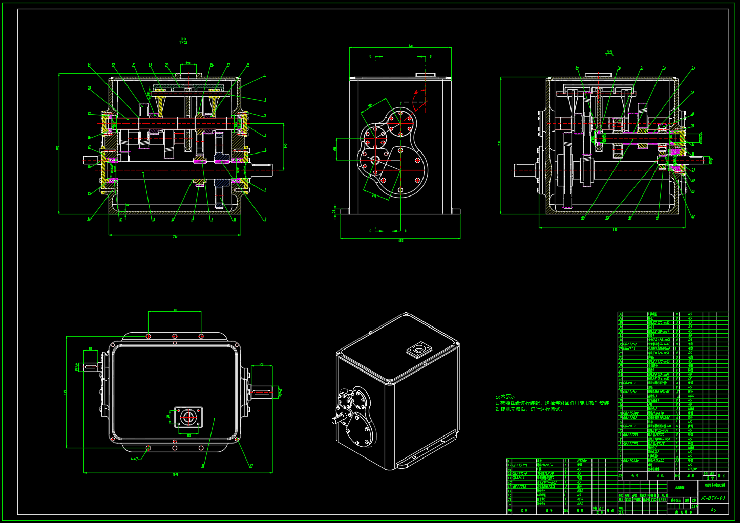 包含全套三维SW2018零部件以及总装配,包含全套二维CAD。 传动系统输入功率:52KW 传动系统输入转速:750r/min,1500r/min 传动系统输出转速:60r/min-3750r/min