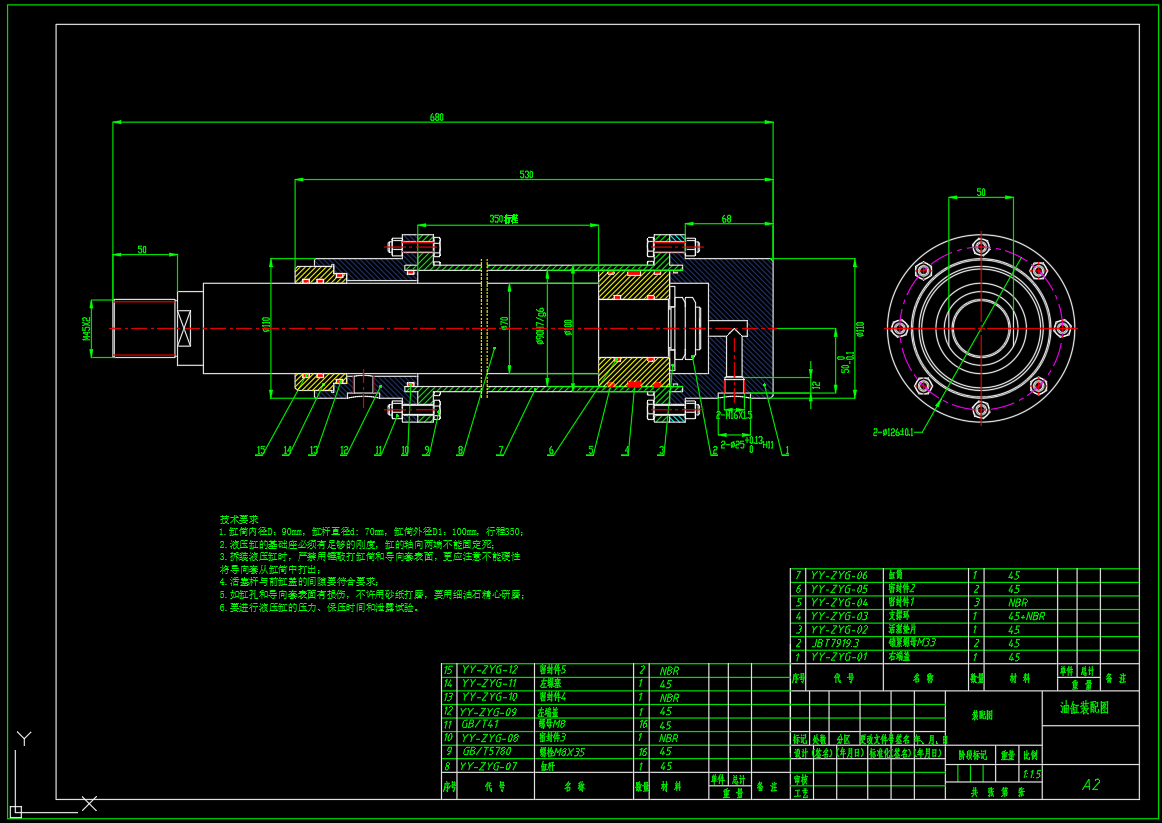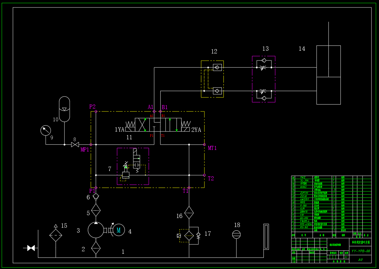 包含二维泵站装配图,液压系统原理图,冷却器支座,油缸装配,油箱焊合,油箱盖和钟罩二维图。 设计要求:额定压力为10-15MPa,液压元件工作温度为50-80℃,噪声不超过80dB。根据设计要求确定泵的型号、电机型号、油箱容积、管路内径等,确定液压站的总体设计方案。