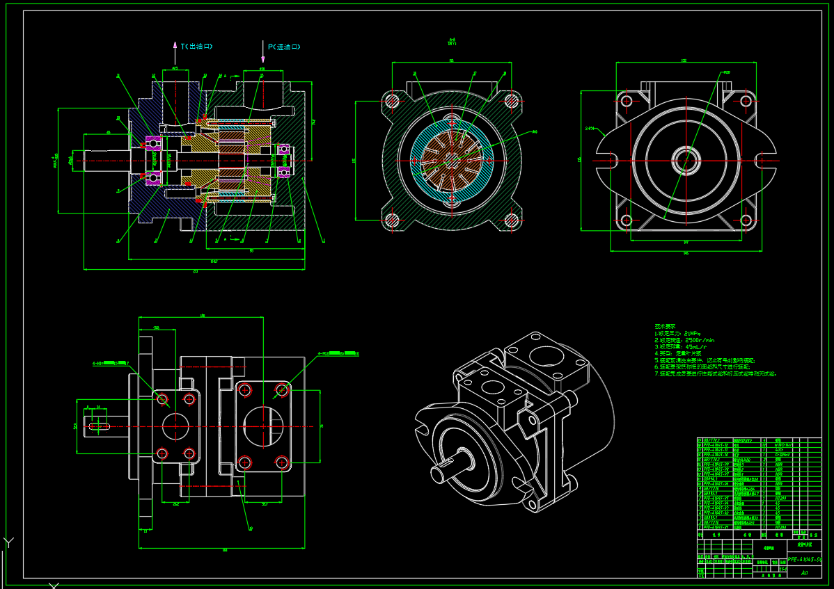 包含全套三维SW2018零部件以及总装配,包含全套二维CAD。 1.设计类型: PFE-41045阿托斯的定量叶片泵2.排量:45ml/r 3.额定转速(或最大转速):2500r/min 4.最大压力:21MPa 5.额定压力:7MPa,14MPa,本设计选取7MPa作为理论计算参数。