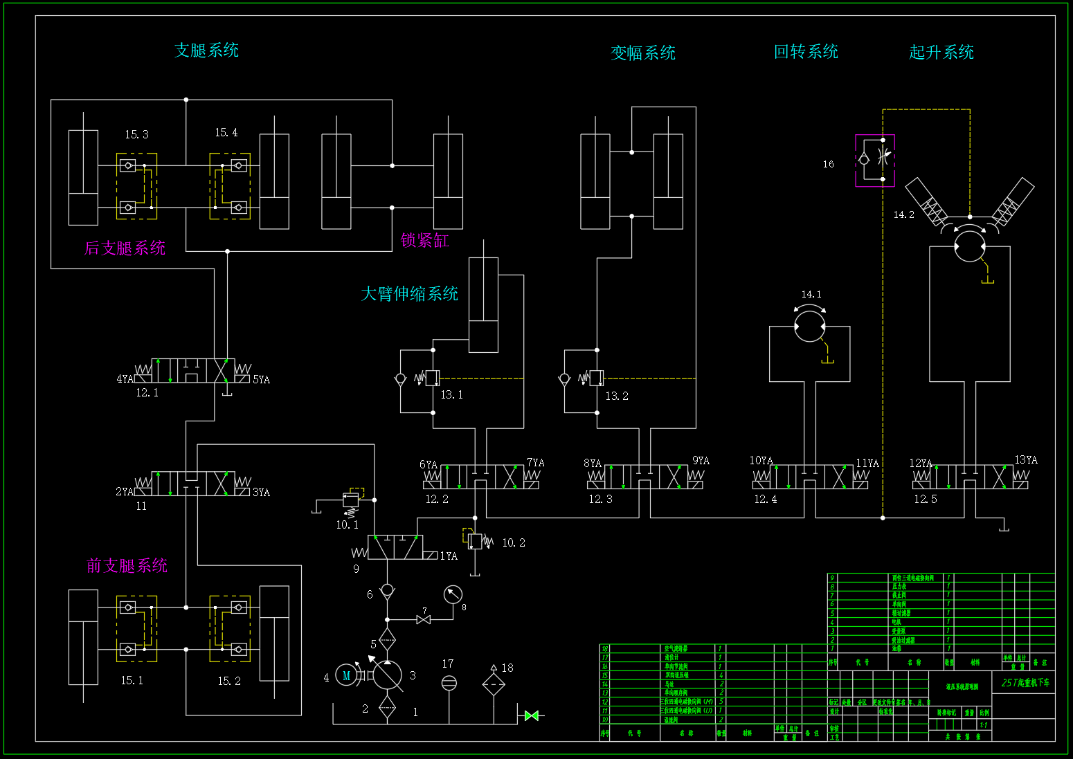 本次设计的是一种25吨随车起重机下车液压系统的设计,主要包括了液压系统原理图的设计,支腿油缸装配图的设计,参数的设计计算等,包括起重量、起升高度、工作幅度、起重力矩和工作级别等内容。