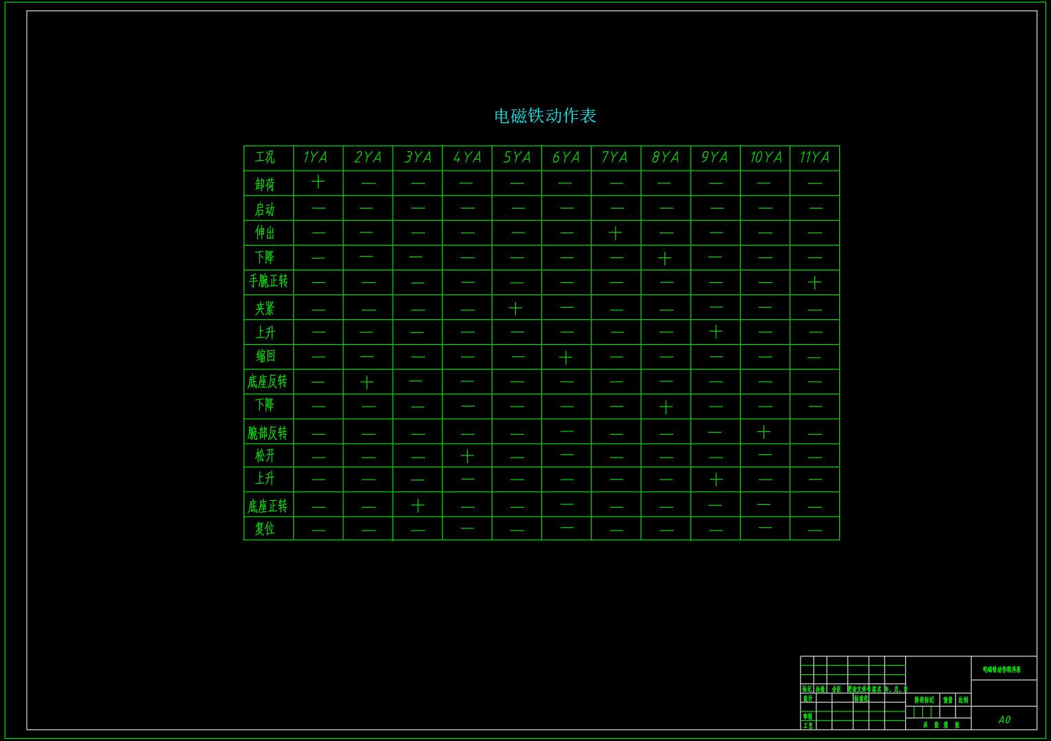根据要求机械手应满足棒料的搬运需求,考虑到空间布置的紧密性,其工作顺序如下: (1)机械手沿着水平直线伸出,机械手的腕部到达了物料的上方,达棒料上方,为夹紧机构竖直下降做准备。 (2)机械手夹紧机构竖直下降,使机械手夹紧机构能够靠近工件,为手爪的抓取做准备。 (3)机械手手腕部分顺时针旋转90°,以便手爪的抓取部分和工件对齐。 (4)手爪抓紧圆形棒料,以便棒料的取出及在物料在搬运过程中的夹紧稳定牢固。 (5)机械手臂竖直上升,棒料夹紧之后,终端执行机构使棒料移除原地。 (6)机械手臂的水平收缩,使得机械手爪回到初始位置。 (7)机械手臂绕柱体逆向转动(逆时针)90°,以便机械手能正确到达搬运终点位置。 (8)机械手臂带动机械手爪竖直下降,以便物料在搬运终点的平稳和准确放下。 (9)机械手的腕部逆时针旋转90°,使机械手手部回到初始位置。 (10)手爪的松开,手部加持部分松开,确保物料的落下。 (11)机械手臂竖直上升,物料放好后,机械手回到物料放松终点的正上方,为回到原位置做准备。 (12)机械手臂沿顺时针方向转动90°,使机械手臂处于原位。