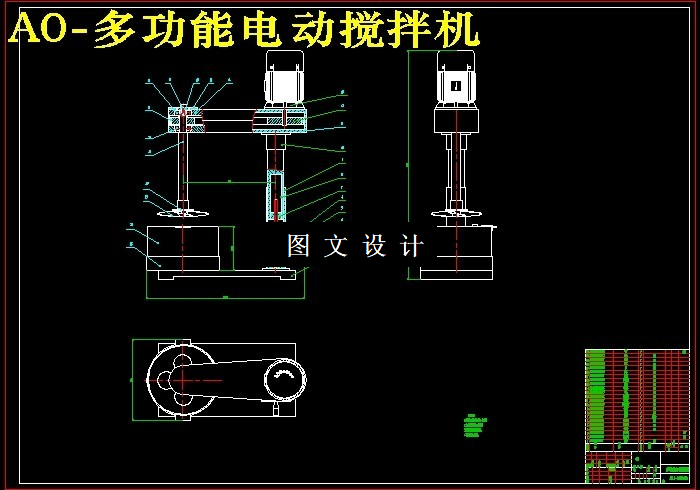 本文介绍了多功能电动搅拌机在我国食品工业生产中应用的重要意义及一些国内外的一些发展现状。多功能电动搅拌机广泛应用于家庭、食品店、集体食堂等场所。在日常生活中,在做糕点的食品店,用于和面,搅匀鸡蛋等,做蛋糕,用于搅匀奶油,我曾见过,学校食堂的师傅,冬天用搅拌机淘米,因为冬天冷,师傅用搅拌机淘米,避免了亲自用手去淘米,避免了人手接触冷水,可谓是一大创新。可见,多功能电动搅拌机在我们日常生活中是何等方便,所以现在正是发展多功能电动搅拌机的大好时机。考虑到目前搅拌机种类和规格很多,但适合食品搅拌的多功能电动搅拌机还不多,因此本次设计主要是根据部分食品的特殊要求,选取旋桨式搅拌头,进行搅拌工作的多功能电动搅拌机,本文主要是对搅拌机的电动机及传动机构、搅拌轴、搅拌叶片等部件的设计,从而达到所需要求。 关键词:旋桨式;多功能电动搅拌机;传动机构;搅拌轴。