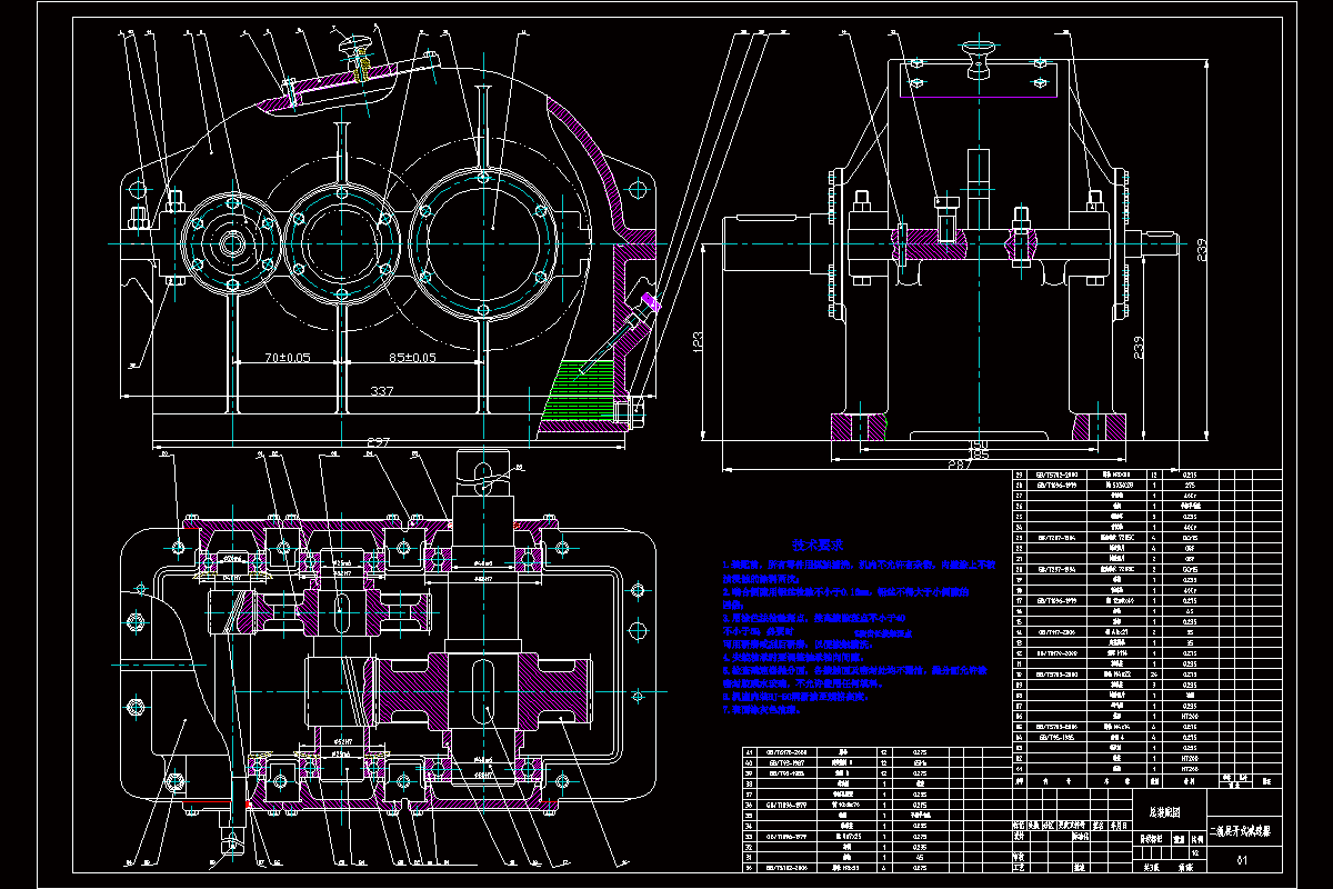 在迅猛发展的当今社会,随着经济发展模式的循环化,市场竞争白炽化,产品高速率的更新换代,使得人们对高技术含量和高质量设计制造的产品也有越来越多的期待,所以企业只有低成本高效率地研发新产品,才能在激烈的市场竞争中立于不败之地。目前各行各业的生产中广泛应用的传动装置——减速器的设计逐渐暴露出很多弊端,如设计花费的时间太多,耗资较大,重复性的操作较多等。这些都限制了减速器的结构和性能的发展,不能满足企业生产的新需求。本文主要就是针对出现的以上问题,通过对常用的圆柱齿轮减速器的结构进行全面的阐释,利用现代化的手段如特征建模、参数化技术等,来进行减速器的三维参数化设计研究。作为各种 CAD 软件核心技术的参数化技术,已经广泛地应用于当今社会各行各业产品的设计中,获得的社会效益也是显而易见的。 在该说明书中,主要的研究内容包括以下几个方面: 1、对减速器的结构特点及其各组成零部件的功能要求进行了详细分析,得出了减速器及其各零件的主要参数、一般参数以及参数之间的相互联系。 2、通过 Pro/E 软件建立了斜齿圆柱轮、直齿圆柱齿轮、齿轮轴、轴承、套筒、上箱体、下箱体等特征的参数化实体模型,设计者只需提供有关的参数,Pro/E 就能自动建立新的实体模型。