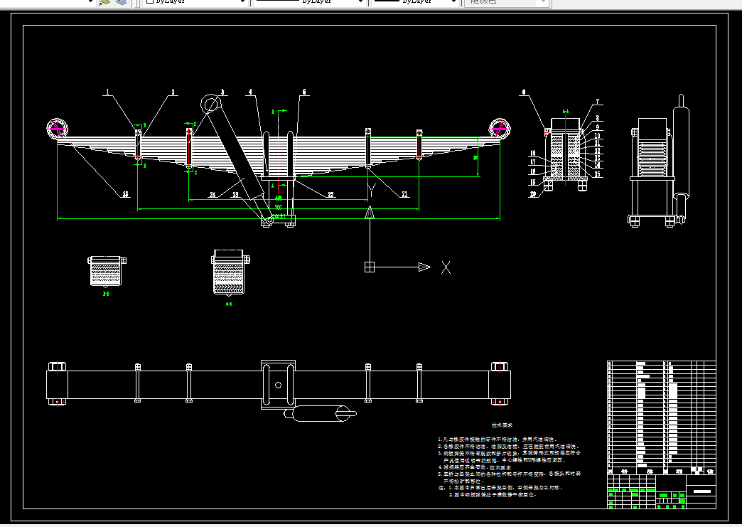 汽车悬架是汽车的车架与车桥或车轮之间的一切传力连接装置的总称,其作用是传递作用在车轮和车架之间的力和力扭,并且缓冲由不平路面传给车架或车身的冲击力,并衰减由此引起的震动,以保证汽车能平顺地行驶。典型的悬架结构由弹性元件、导向机构以及减振器等组成,个别结构则还有缓冲块、横向稳定杆等。本文讨论了汽车悬架的发展现状,对悬架的结构形式进行简单介绍,对影响悬架运动的各种因素进行分析,主要对中型货车板簧悬架的主要参数进行设计计算,包括中型货车前桥钢板弹簧、后桥复合式钢板弹簧、汽车减振器参数的选择计算和横向稳定杆的设计计算。为进一步设计板簧悬架提供了较有价值的资料。