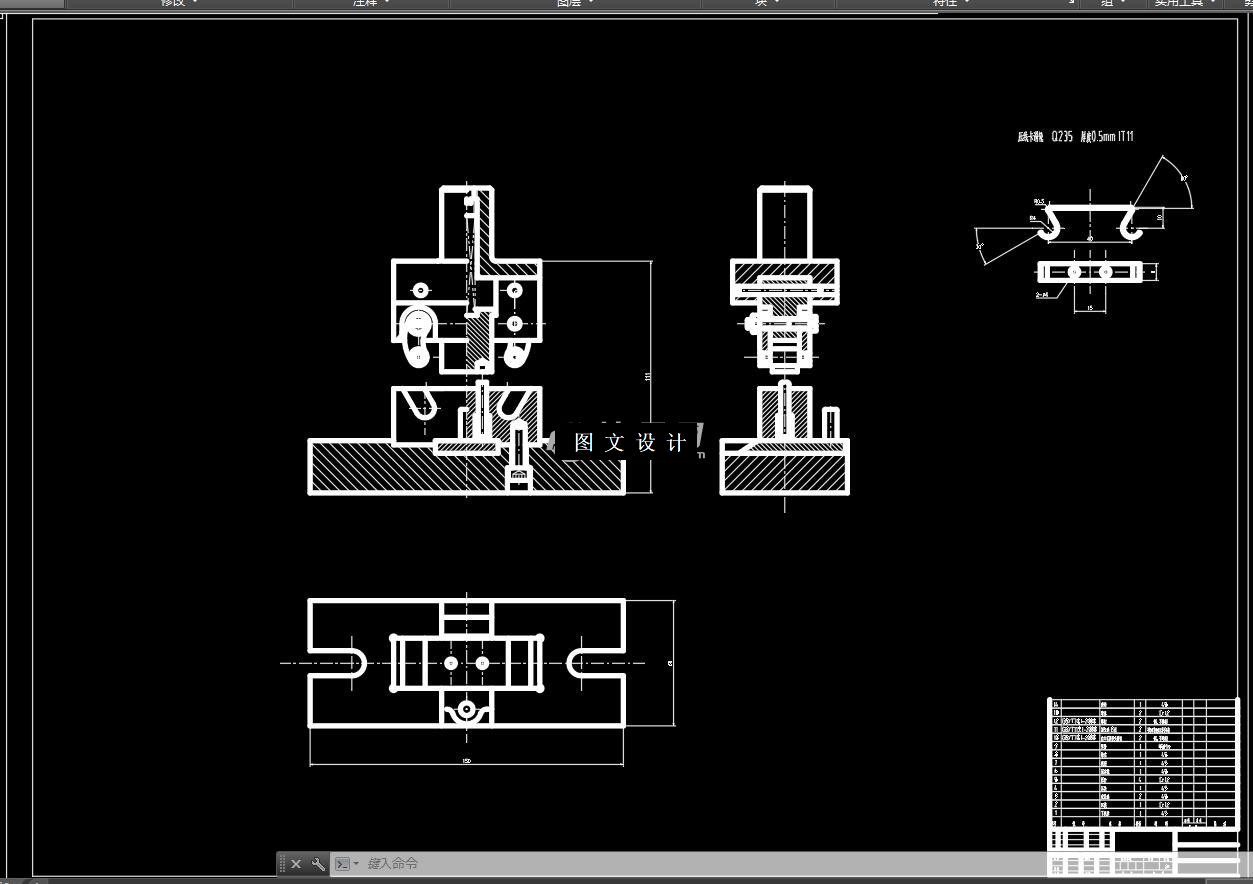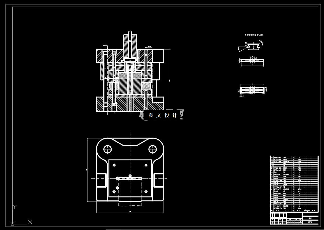 本课题为压线卡滑轮落料冲孔落料复合模和弯曲模的设计,本文介绍的模具实例结构简单实用,使用方便可靠。本套模具的设计不是以复杂模具的设计为主,而主要是对模具设计知识的系统学习和设计的练习,以达到掌握冲压模具设计的基本技能的目的。 首先,对零件做整体的分析。包括:材料的使用、精度的要求、工序的要求以及成本的要求等。为了降低成本,对排样方式进行了合理的设计;其次,对零件整体进行工艺设计。通过工艺目的的设计、工序的顺序设计、压力机的选择等来实现所要达到的要求;再次,想要保证制件精度的要求,就要考虑模具刃口尺寸的计算。因为刃口是冲制工件的主要工作部分,刃口处的精度就决定了制件的精度,就必须根据公差来进行精确计算。 最后,根据计算出的模具刃口尺寸设计出相应的凸凹模,并且查找资料选择冷冲压模的标准零件,符合标准后,就把凸凹模与其它各零部件进行总体装配。在确定了模具体闭合高度后,选出合适的压力机在调试校验后并进行试冲加工,以达到符合的标准,最终完成链板片的加工。