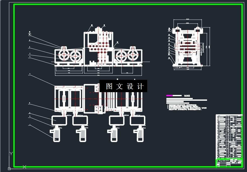 拉弯矫直机本体由入、出口通带辊、两弯两矫的四个单元辊座、下辊座压上装置、机架等组成。其中张力辊组,矫直机组的设计为主要内容。本机结构上张力辊组的传动采用了每个张力辊由功率各异的直流电机传动,采用联轴器、减速器、电机把动力传给输送给张力辊部分,带材在张力辊的作用下运动受拉伸力,并在矫直机部分矫直。 本设计图纸三维由CATIA绘制,同时为了方便审阅转换了IGS格式,同时还有CAD二维图。