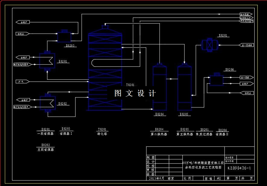 本设计针对硫磺制硫酸工艺,在查阅了硫磺生产相关文献资料以及省煤器的相关资料的基础上,实现年产60万吨硫酸生产装置转化工段的余热回收。介绍了硫酸生产的工艺过程和热管省煤器。主要内容包括热管的原理,分类以及热管省煤器在实际生产中的应用。文章重点完成了转化工段省煤器的热力设计,其中包括热量衡算,传热系数计算,传热面积计算,阻力计算,强度校核计算;完成了省煤器结构设计和自动控制设计;完成了相关图纸的绘制。其中包括系统工艺流程图和省煤器系统布置图、总装配图以及主要零部件图。