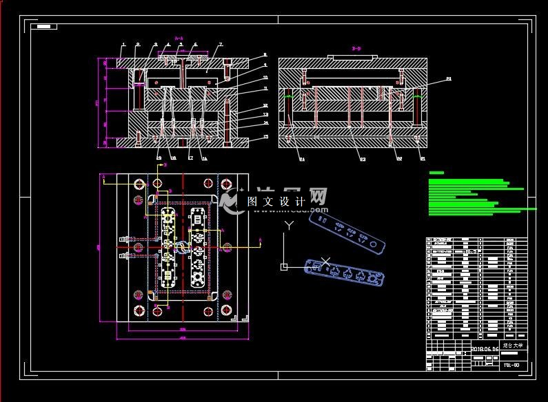 针对排插面板的模具设计,通过对塑件工艺、结构等方面进行分析和比较,最终设计出一副注塑模。该课题从产品结构工艺性,具体模具结构结合具体情况对注塑模的浇注系统、模具成型部分、顶出机构、冷却系统等个方面进行详细的设计。通过整个设计过程表明该模具能够达到此塑件所要求的加工工艺。在设计时主要采用了应用ug6.0软件对塑料外壳制品进行了零件造型;使用CAD及其燕秀工具箱对排插面板进行模具设计。主要完成了对排插面板的工艺结构分析;塑件体积和重量的计算;注塑模的结构型式确定,浇注系统设计,推出机构的设计,型腔和型芯的结构设计,模具加热和冷却系统的计算,并按照比例绘制一张总装配图。 针对排插面板的具体结构,该模具是设计重点是在侧浇注系统及分型面的设计方面。模具采用一模2腔的侧浇口进浇,采用斜顶内抽,推管和推杆共同作用。其优点在于模具结构简单,提高制造精度,节约材料,大大提高了生产效率以及经济利益。