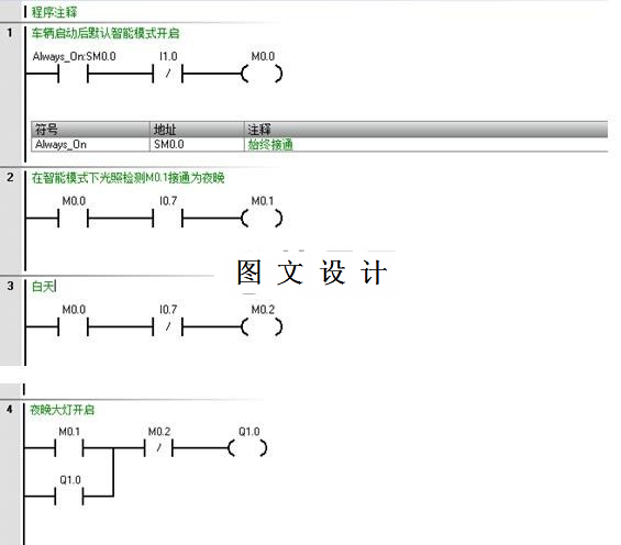 智能车灯控制系统设计,包含接线图、程序、流程图、分配表、PLC选用S7-200系列,以及设计说明书,智能车灯通过几种灯光模式的调节,实现对车灯的智能控制,欢迎相关设计人员下载