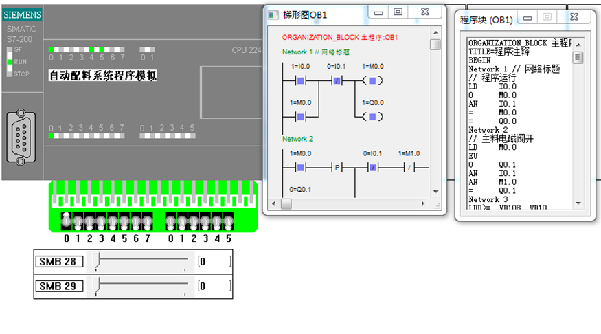 在本次设计中首先对自动配料系统做了简明阐述,通过现状分析和背景资料,简明的阐述了自动配料供料的主要控制方式。然后对自动配料系统的选择和硬件部分的选型,通过控制系统流程图的绘制和I/O表的绘制,使用S7-200西门子编写软件进行梯形图的编写,最后通过仿真模拟软件对程序的在线模拟调试,优化并修改程序。