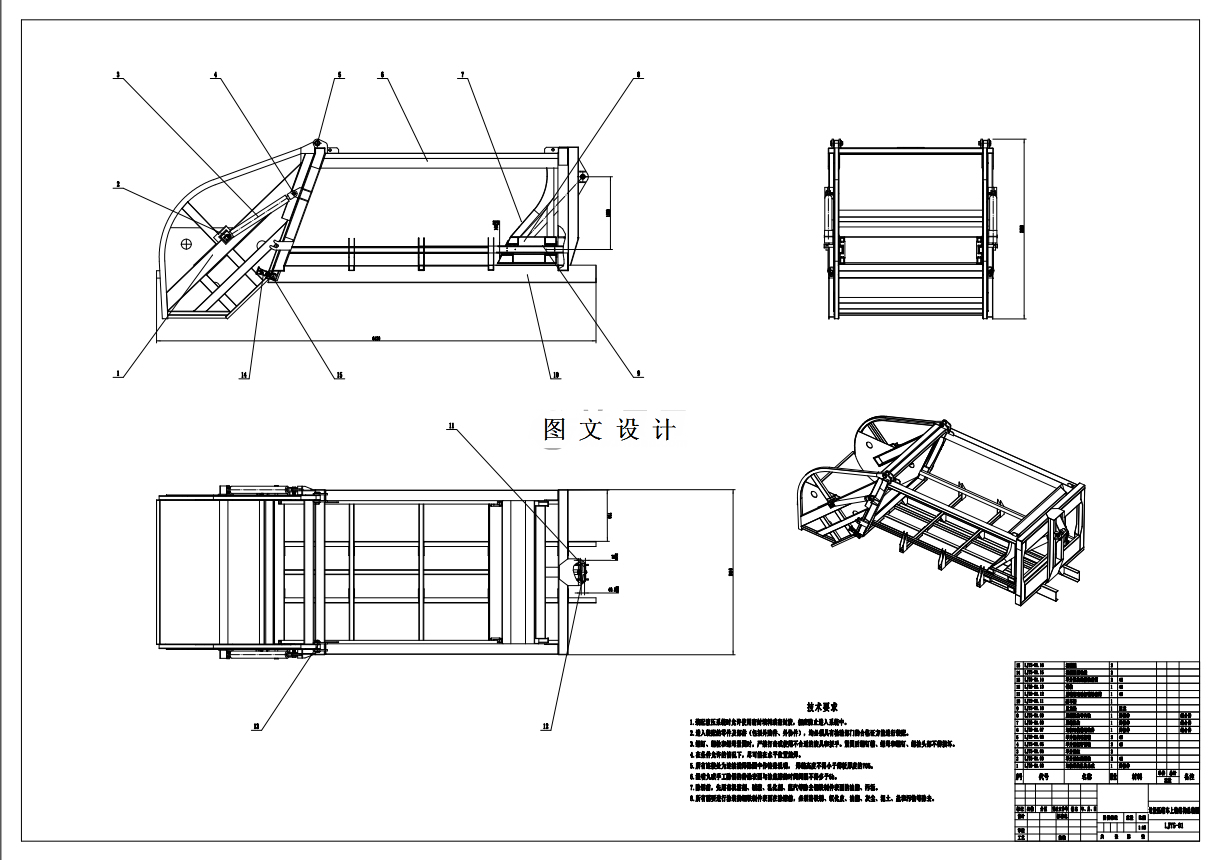 本资料是一份压缩式垃圾车机械液压系统设计。整车为全密封型,自行压缩、自行倾倒、压缩过程中的污水全部进入污水厢,较为彻底的解决了垃圾运输过程中的二次污染问题,关键部位采用优质的部件,具有压力大、密封性好、操作方便、安全等优点。可供参考 1652265