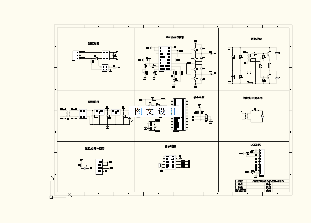 超声波清洗是利用超声波在液体内部产生的“空化效应”,使得不溶性污物在空化所产生的巨大压力能下遭到破坏,并分散在液体中。由此超声波清洗清除了附着在物体表面的杂质和污垢。 本课题设计的目的在于设计一个小型超声波清洗机,并具有定时清洗、自动检测水位、音乐播放、语音提醒等功能。根据设计任务书的要求,本文对其进行了系统整体方案的设计。包括驱动电路以及主控电路的设计。 驱动电路主要由整流滤波,逆变与驱动,调谐与阻抗匹配电路模块构成。主控电路主要以89C52单片机为核心控制元件,通过按键对清洗时间进行选择,并将其工作状态在LCD显示屏上显示,具体良好的人机体验。同时该清洗机能自动判别水位的高低,并自动执行相应的动作。实践证明系统稳定可靠,应用前景广阔。