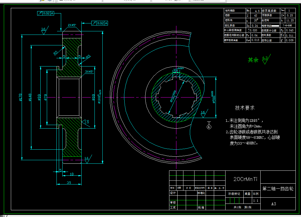 本次变速器毕设的主要工作任务和设计要求之一就是设计一台目前广泛应用于石油天然气双层公交客车的机械式齿轮变速器,设计的内容主要是变速器包括第一轴、第二轴和中间轴以及其上的齿轮的设计。所以在设计中首先我们确定了变速器总体方案和倒挡布置方案,之后计算各挡的传动比,初选中心距等,然后对变速器各挡齿轮进行了齿数分配、计算其分度圆,齿顶圆和齿根圆等参数,并对其齿轮刚度进行校核。最后对变速器的四根轴进行了计算,同时也对它们进行了强度和刚度校核。我们在完成上述毕设计算的任务后,使用了Catia软件,并根据上述计算的参数对各个变速器零件进行了设计。最终我们利用Catia软件的工程图纸功能,将所设计的三维模型转化为二维图纸,并导入AutoCAD软件中绘制标准工程图纸。