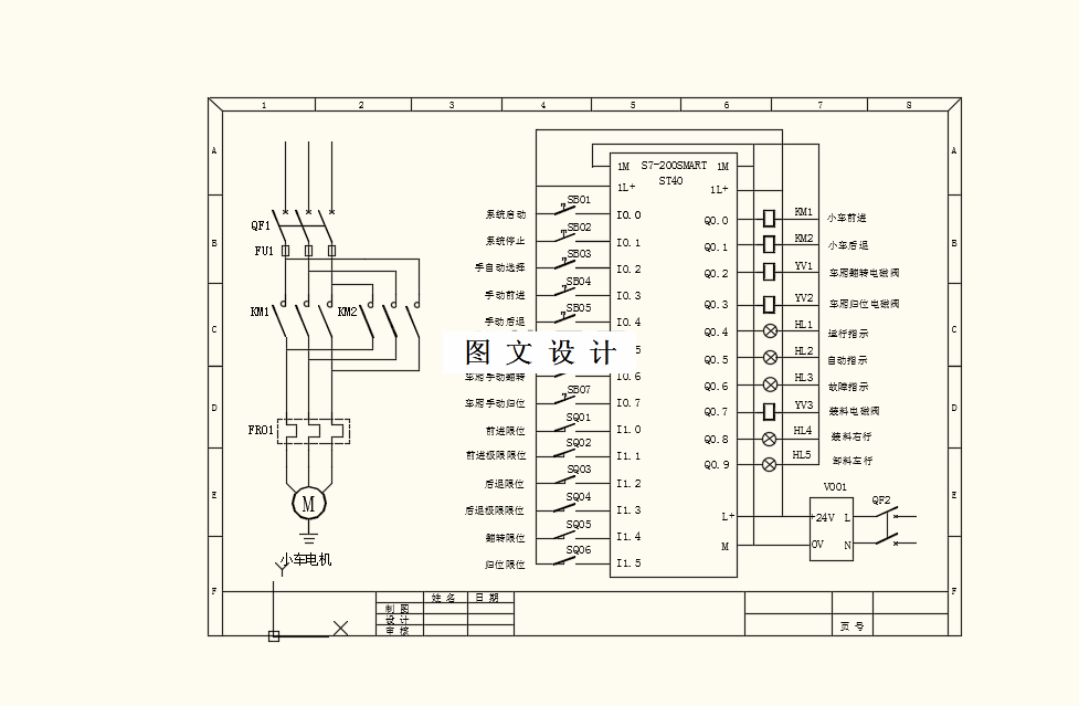 运料小车控制系统主要按照生产线小车的运输功能要求,对物料进行两地传输,系统主要由小车、电磁阀、传感器等组成,按照规定的工艺流程进行顺序控制的设计需求,对系统进行硬件和软件控制设计,通过调试和仿真达到设计工艺的要求,满足设计的需求。系统主要通过可编程控制器加上位机控制方式进行设计,在分析该系统的工艺要求基础上,提出详尽的控制策略和总体设计思路。系统主要由西门子S7-200SMART可编程控制器、传感器检测单元、电动机执行机构等组成,按照PLC设计的思路,对运料小车控制系统进行工艺要求设计和控制方案确定,在此基础上完成设备的选型设计和硬件I/O分配设计。根据外部的输入输出和电路要求,对运料小车控制系统进行原理接线图设计。对系统的工艺流程按照方案和要求绘制,分析程序的设计过程。通过上位机的仿真设计,对各种工艺功能进行验证,达到系统设计的要求,并且能够满足后期的升级改造。运料小车控制系统的设计符合了设计实际工艺,系统可行稳定。