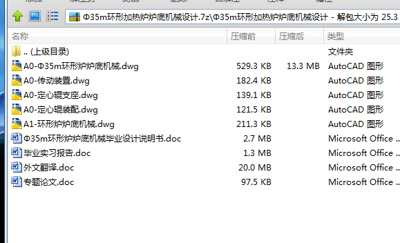 本次设计是关于环形加热炉炉底机械的设计,环形加热炉是一种能够间断性转动的环形炉子,使放置在炉底上的管坯由装料口移送到出料口进行连续加热的机械炉子。本设计主要对环形加热炉炉底传动装置结构进行设计和受力分析,对炉底中心定位进行设计计算。