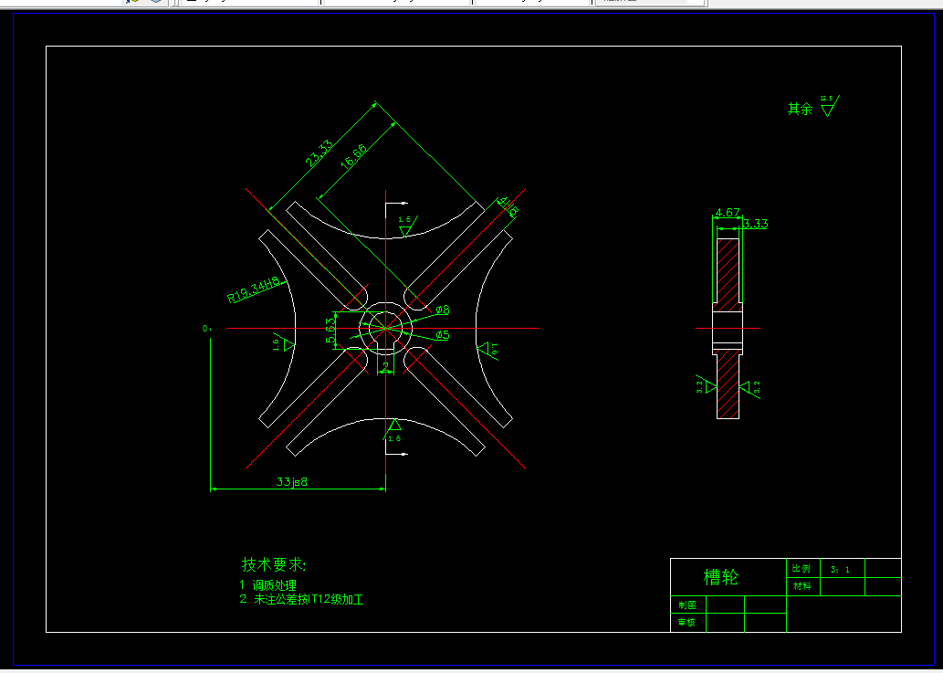 本设计以槽数4 、销轮和槽轮中心距33 mm、销轴半径2 mm、铣刀半径2mm 为例,设计槽槽轮机构,并对槽轮的运动特性进行分析。采用CAM技术对槽轮和拨盘进行数控编程,对零件进行工艺分析,确定刀具和切削用量,最后形成NC指令。